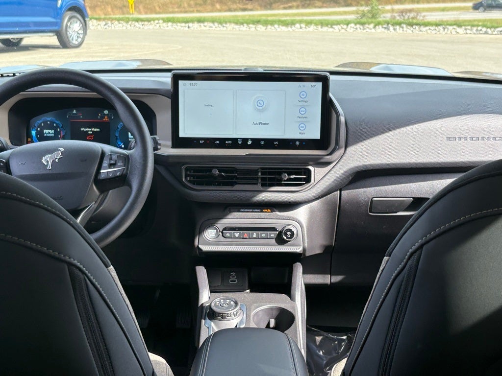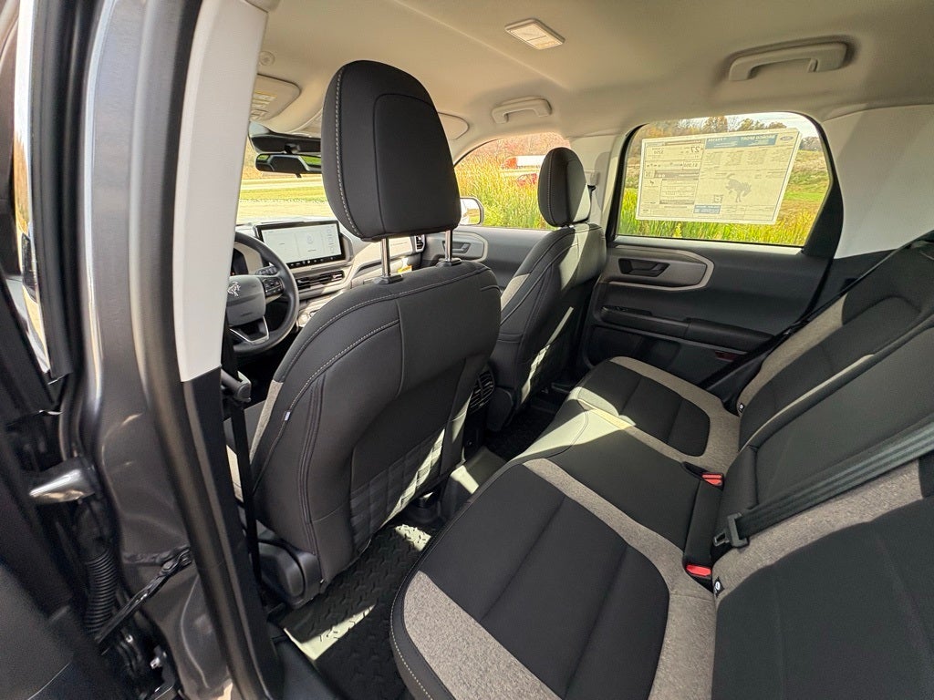 Gray Metallic 2025 Ford Bronco Sport Big Bend 4WD 8-Speed Automatic 1.5L EcoBoost 4-Wheel Disc Brakes, 6 Speakers, ABS brakes, Air Conditioning, Alloy wheels, AM/FM radio: SiriusXM, AM/FM Stereo, Auto High-beam Headlights, Automatic temperature control, Brake assist, Cloth w/Easy-to-Clean Front Bucket Seats, Compass, Delay-off headlights, Driver door bin, Driver vanity mirror, Dual front impact airbags, Dual front side impact airbags, Electronic Stability Control, Emergency communication system: SYNC 4 911 Assist, Four wheel independent suspension, Front anti-roll bar, Front Bucket Seats, Front Center Armrest, Front reading lights, Fully automatic headlights, Heated door mirrors, Illuminated entry, Knee airbag, Low tire pressure warning, Occupant sensing airbag, Outside temperature display, Overhead airbag, Overhead console, Panic alarm, Passenger door bin, Passenger vanity mirror, Power door mirrors, Power steering, Power windows, Radio data system, Rear anti-roll bar, Rear Parking Sensors, Rear reading lights, Rear seat center armrest, Rear window defroster, Rear window wiper, Remote keyless entry, Security system, SiriusXM, Speed control, Speed-sensing steering, Speed-Sensitive Wipers, Split folding rear seat, Steering wheel mounted audio controls, SYNC 4 w/Enhanced Voice Recognition, Tachometer, Telescoping steering wheel, Tilt steering wheel, Traction control, Trip computer, Variably intermittent wipers, Wheels: 17 Carbonized Gray-Painted Aluminum.