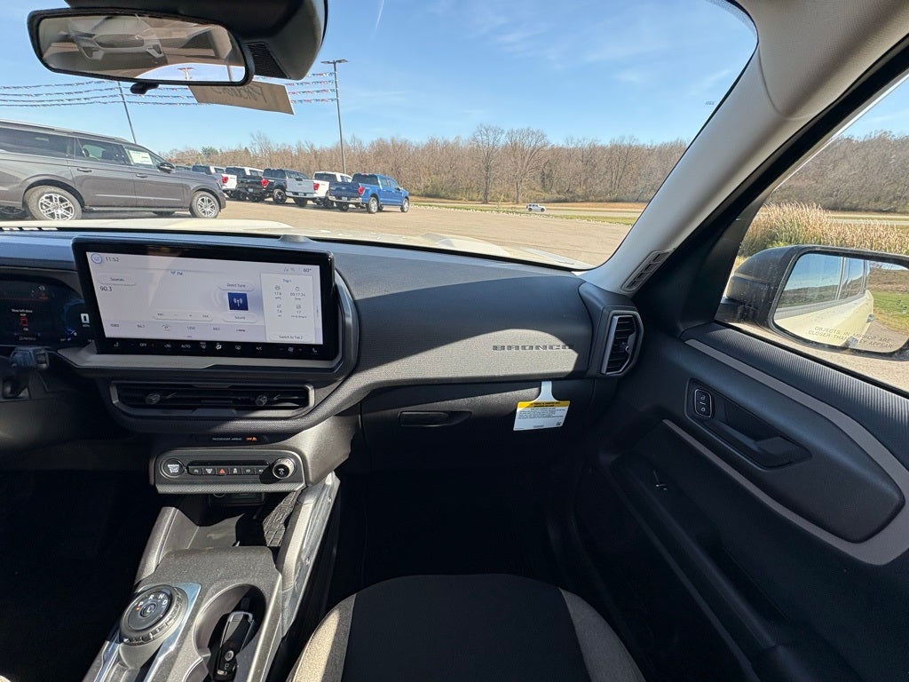 Desert Sand 2025 Ford Bronco Sport Big Bend 4WD 8-Speed Automatic 1.5L EcoBoost 4-Wheel Disc Brakes, 6 Speakers, ABS brakes, Air Conditioning, Alloy wheels, AM/FM radio: SiriusXM, AM/FM Stereo, Auto High-beam Headlights, Automatic temperature control, Brake assist, Cloth w/Easy-to-Clean Front Bucket Seats, Compass, Delay-off headlights, Driver door bin, Driver vanity mirror, Dual front impact airbags, Dual front side impact airbags, Electronic Stability Control, Emergency communication system: SYNC 4 911 Assist, Four wheel independent suspension, Front anti-roll bar, Front Bucket Seats, Front Center Armrest, Front reading lights, Fully automatic headlights, Heated door mirrors, Illuminated entry, Knee airbag, Low tire pressure warning, Occupant sensing airbag, Outside temperature display, Overhead airbag, Overhead console, Panic alarm, Passenger door bin, Passenger vanity mirror, Power door mirrors, Power steering, Power windows, Radio data system, Rear anti-roll bar, Rear Parking Sensors, Rear reading lights, Rear seat center armrest, Rear window defroster, Rear window wiper, Remote keyless entry, Security system, SiriusXM, Speed control, Speed-sensing steering, Speed-Sensitive Wipers, Split folding rear seat, Steering wheel mounted audio controls, SYNC 4 w/Enhanced Voice Recognition, Tachometer, Telescoping steering wheel, Tilt steering wheel, Traction control, Trip computer, Variably intermittent wipers, Wheels: 17 Carbonized Gray-Painted Aluminum.