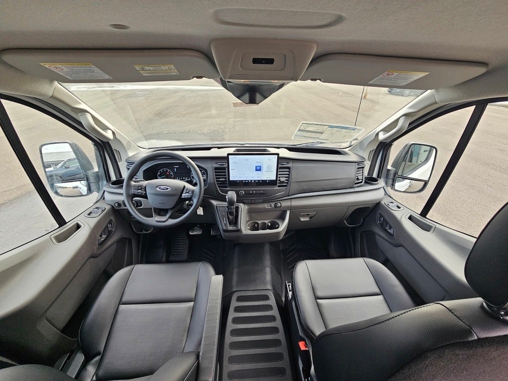 Oxford White 2025 Ford Transit-250 RWD 10-Speed Automatic with Overdrive 3.5L V6 Flex Fuel 3.73 Axle Ratio, 4 Speakers, 4-Wheel Disc Brakes, ABS brakes, Air Conditioning, AM/FM radio, AM/FM Stereo, Auto High-beam Headlights, Brake assist, Dark Palazzo Gray Vinyl Bucket Seats, Delay-off headlights, Driver door bin, Driver's Seat Mounted Armrest, Dual front impact airbags, Dual front side impact airbags, Electronic Stability Control, Exterior Parking Camera Rear, Front anti-roll bar, Front Bucket Seats, Front reading lights, Front wheel independent suspension, Fully automatic headlights, Illuminated entry, Low tire pressure warning, Occupant sensing airbag, Overhead airbag, Panic alarm, Passenger cancellable airbag, Passenger door bin, Passenger-Side B-Pillar Assist Handle, Power door mirrors, Power steering, Power windows, Remote keyless entry, Short-Arm Manual-Folding Power Adjust Mirrors, Speed control, Steering wheel mounted audio controls, Tachometer, Telescoping steering wheel, Tilt steering wheel, Traction control, Variably intermittent wipers, Vinyl Front Bucket Seats, Wheels: 16 Silver Steel w/Black Hubcap.