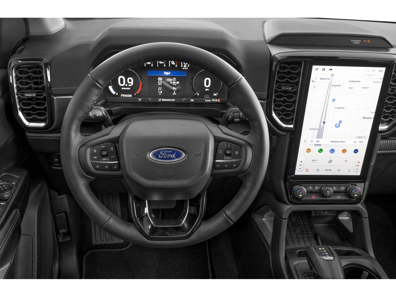 Oxford White 2026 Ford Ranger Lariat 4WD 10-Speed Automatic 2.7L EcoBoost V6 4WD, 10 Speakers, 3.73 Axle Ratio, 4-Wheel Disc Brakes, ABS brakes, ActiveX Trimmed Front Heated Bucket Seats, Air Conditioning, Alloy wheels, AM/FM radio: SiriusXM with 360L, Auto High-beam Headlights, Auto-dimming Rear-View mirror, Automatic temperature control, Black Appearance Package, Black Center Bar and Surround Grille, Black Rear Bumper, Black Running Boards, Body-Color Painted Front Fascia, Brake assist, Chrome Center Bar and Grille Surround, Compass, Delay-off headlights, Driver door bin, Driver vanity mirror, Dual front impact airbags, Dual front side impact airbags, Electronic Stability Control, Emergency communication system: SYNC 4 911 Assist, Equipment Group 500A Standard, Front and Rear Black Ford Ovals, Front and Rear Splash Guards/Mud Flaps, Front anti-roll bar, Front Bucket Seats, Front Center Armrest, Front dual zone A/C, Front fog lights, Front reading lights, Front wheel independent suspension, Fully automatic headlights, Garage door transmitter, Gray Painted Front Fascia and Rear Bumper, Heated door mirrors, Heated front seats, Heated steering wheel, Illuminated entry, Leather Shift Knob, Low tire pressure warning, Memory seat, Navigation system: Connected Navigation, Occupant sensing airbag, Outside temperature display, Overhead airbag, Overhead console, Painted Body-Color Wheel Lip Molding, Panic alarm, Passenger door bin, Passenger vanity mirror, Power door mirrors, Power driver seat, Power passenger seat, Power steering, Power windows, Radio: B&O Sound System by Bang and Olufsen, Rain sensing wipers, Rear reading lights, Rear seat center armrest, Rear step bumper, Rear window defroster, Remote keyless entry, Security system, SiriusXM with 360L (3-Year Plan), SiriusXM with 360L and 3-Month Trial Subscription, Soft Folding Tonneau Pickup Box Cover, Speed control, Speed-sensing steering, Sport Appearance Package, Sport Box Decal, Steering wheel mounted audio controls, SYNC 4A with Connected Navigation, Telescoping steering wheel, Tilt steering wheel, Tough Bed Spray-in Bedliner, Traction control, Tray Style Floor Liner with Carpet Floor Mats, Trip computer, Turn signal indicator mirrors, Unique Carpet Mats, Variably intermittent wipers, Voltmeter, Wheels: 18 Black Painted, Wheels: 18 Machined Aluminum with Dark Pockets, 4WD.