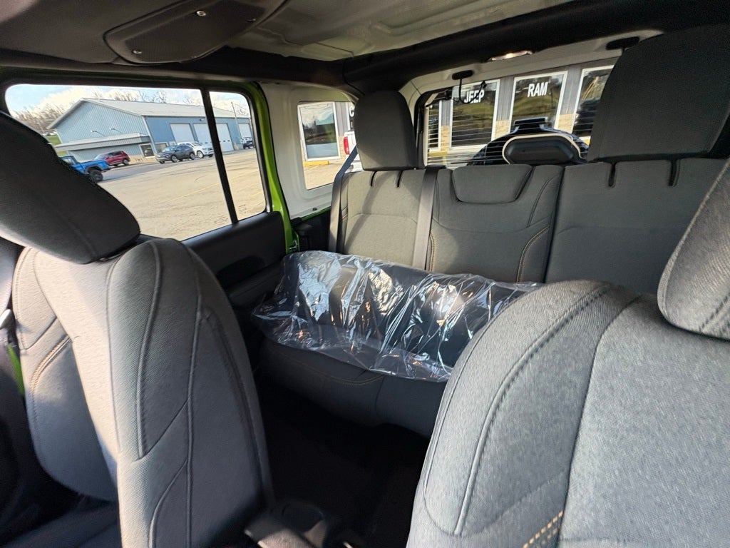 Mojito Clearcoat 2026 Jeep Wrangler Willys 4WD 8-Speed Automatic 2.0L I4 DOHC 4-Wheel Disc Brakes, 4-Wheel Drive Swing Gate Decal, 8 Speakers, ABS brakes, Advanced Brake Assist, Air Conditioning, AM/FM radio: SiriusXM with 360L, Apple CarPlay/Android Auto, Automatic Headlamps, Aux Battery, Auxiliary Switches, Black 3-Piece Hard Top, Brake assist, Class II Receiver Hitch, Cloth Low-Back Bucket Seats, Compass, Conventional Differential Front Axle, Corning Gorilla Glass, Dana M210 Wide HD Tube Front Axle, Dana M220 Wide Rear Axle, Daytime Running Lamps LED Accents, Deep Tint Sunscreen Windows, Delay-off headlights, Driver door bin, Driver vanity mirror, Dual front impact airbags, Dual front side impact airbags, E-Locker Rear Axle, Electronic Stability Control, Enhanced Adaptive Cruise Control, Freedom Panel Storage Bag, Front anti-roll bar, Front Bucket Seats, Front Center Armrest w/Storage, Front fog lights, Front LED Fog Lamps, Front reading lights, Full Speed Forward Collision Warning Plus, Illuminated entry, Injection Molded Black Rear Bumper, Integrated roll-over protection, LED Premium Reflector Headlamps, Low tire pressure warning, Molded in Color Rubicon Highline Flare, MOPAR All-Weather Floor Mats, Normal Duty Suspension, Occupant sensing airbag, Off-Road Plus Mode, Outside temperature display, Overhead airbag, Panic alarm, ParkView Rear Back-Up Camera, Passenger door bin, Passenger vanity mirror, Power Heated Mirrors, Power steering, Power windows, Premium Wrapped Steering Wheel, Quick Order Package 22W Willys, Radio data system, Rear anti-roll bar, Rear reading lights, Rear Window Defroster, Rear Window Wiper/Washer, Remote keyless entry, Security Alarm, Speed control, Split folding rear seat, Steering wheel mounted audio controls, Stop-Start Dual Battery System, Tachometer, Telescoping steering wheel, Tilt steering wheel, Traction control, Trip computer, Variably intermittent wipers, Wheels: 17 x 7.5 Black Steel Styled, Wheels: 17 x 7.5 Painted Black, Willy's Suspension, Willys Hood Decal.