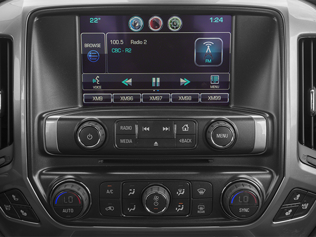 Take command of the road in this Dark Gray 2014 Chevrolet Silverado 1500 LTZ Crew Cab 4x4 with a 5.8 ft. short bed. Powered by the robust EcoTec3 5.3L Flex Fuel V8 engine paired with a 6-speed shiftable automatic transmission, this Silverado delivers both performance and reliability. Enjoy premium comfort with full feature leather-appointed front bucket seats, heated driver and passenger seats, dual-zone automatic climate control, and a leather-wrapped steering wheel. The advanced 8-inch Chevrolet MyLink infotainment system features navigation, Bluetooth®, SiriusXM, voice-operated radio, and a rearview camera for modern convenience. This truck is ready for work or play with its trailer hitch, 7-pin wiring, tow/haul mode, auxiliary transmission/oil coolers, and part-time 4WD with electronic hi-lo selector. Stand out with chrome bumpers, grille, and aluminum alloy wheels, while the power-folding heated mirrors, remote engine start, and memory settings add luxury. Safety features include front/rear side curtain airbags, stability control, and a rear locking differential. Well-maintained and built to last, this Silverado is your ultimate all-purpose truck.