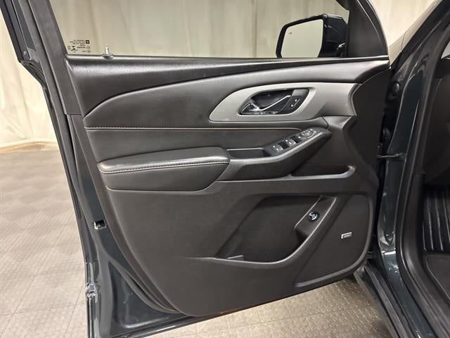 Experience capability and comfort with this dark gray 2021 Chevrolet Traverse RS 4x4 SUV. With a powerful 3.6L V6 engine and smooth 9-speed automatic transmission, this SUV is built for confident driving in all conditions. Enjoy advanced safety features such as Front Automatic Emergency Braking, Lane Keeping Assist, Pedestrian Detection, and Rear Cross Traffic Alert. Inside, you'll find leather-trimmed upholstery, heated front seats, a heated steering wheel, Bose premium audio, and a spacious three-row layout with easy-folding rear seats. Stay connected with the Chevrolet Infotainment System, 8-inch touchscreen, Apple CarPlay, Android Auto, Wi-Fi hotspot, and remote engine start. The Surround View Camera System and camera-based rearview mirror make parking and maneuvering a breeze. Loaded with smart storage, power liftgate, black roof rails, and striking RS styling, this Traverse balances style, tech, and versatility for your family or adventure needs. Schedule your test drive today and see why the Traverse RS stands out among SUVs.