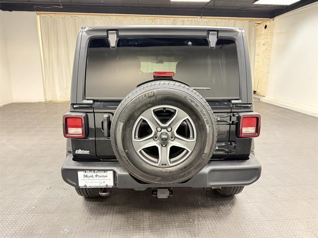 Conquer any terrain in style with this black 2022 Jeep Wrangler Unlimited Willys Sport 4x4 SUV. Built for adventure, it features the powerful 2.0L Turbo I4 engine paired with an 8-speed shiftable automatic transmission and robust part-time 4WD. The Willys Sport is loaded with off-road essentials like front and rear tow hooks, skid plates, rear limited slip differential, and Jeep Trail Rated Kit. Enjoy versatility with the black 3-piece hard top, running boards, and 60/40 split folding rear seat. Stay connected with a 7-inch Uconnect touchscreen, Apple CarPlay, Android Auto, Bluetooth®, and SiriusXM compatibility. Comfort and convenience are enhanced with remote proximity keyless entry, push-button start, cruise control, and multiple USB outlets. Safety comes standard with a rearview camera, traction control, hill holder, trailer stability control, and advanced airbags. The rugged exterior includes black grille, fender flares, and alloy wheels, while the interior is equipped with washable rubber/vinyl floor mats-ready for any adventure.