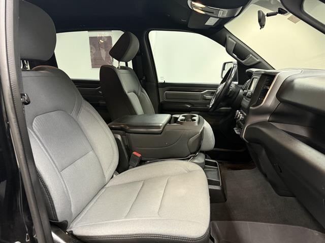 Discover rugged capability and modern comfort in this Black 2023 Ram 1500 Big Horn Crew Cab 4x4 with a 5.6 ft. short bed. Powered by the Pentastar eTorque 3.6L V6 engine paired with an 8-speed shiftable automatic, you'll enjoy a robust blend of performance and efficiency. The Big Horn trim delivers standout style with chrome front and rear bumpers, aluminum alloy wheels, and a bold black grille. Stay connected on the go with Uconnect infotainment, Bluetooth® wireless data link, a 5-inch touchscreen display, and multiple USB and USB-C power outlets. Convenience features include push-button start, remote start system, power-locking tailgate, and keyless entry. Safety is top-notch with a rearview camera, front and rear side curtain airbags, trailer stability control, and a tire pressure monitoring system. Enjoy added comfort with cloth upholstery, a leather-wrapped steering wheel, dual-zone air conditioning, and split-folding rear seats for versatile cargo space. Perfect for work or play, this Ram 1500 Big Horn is ready for your next adventure.