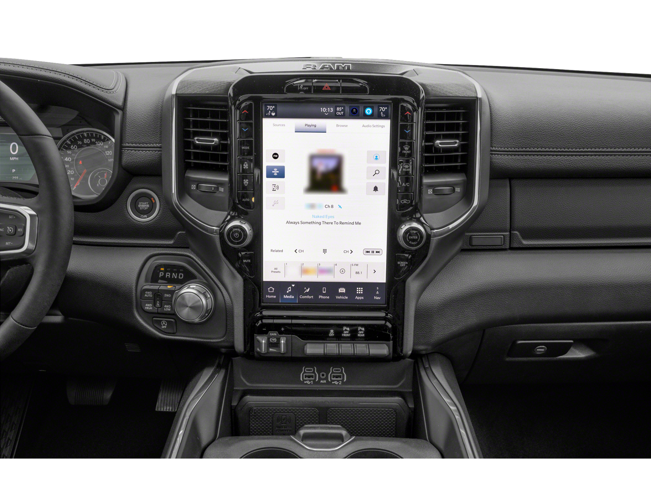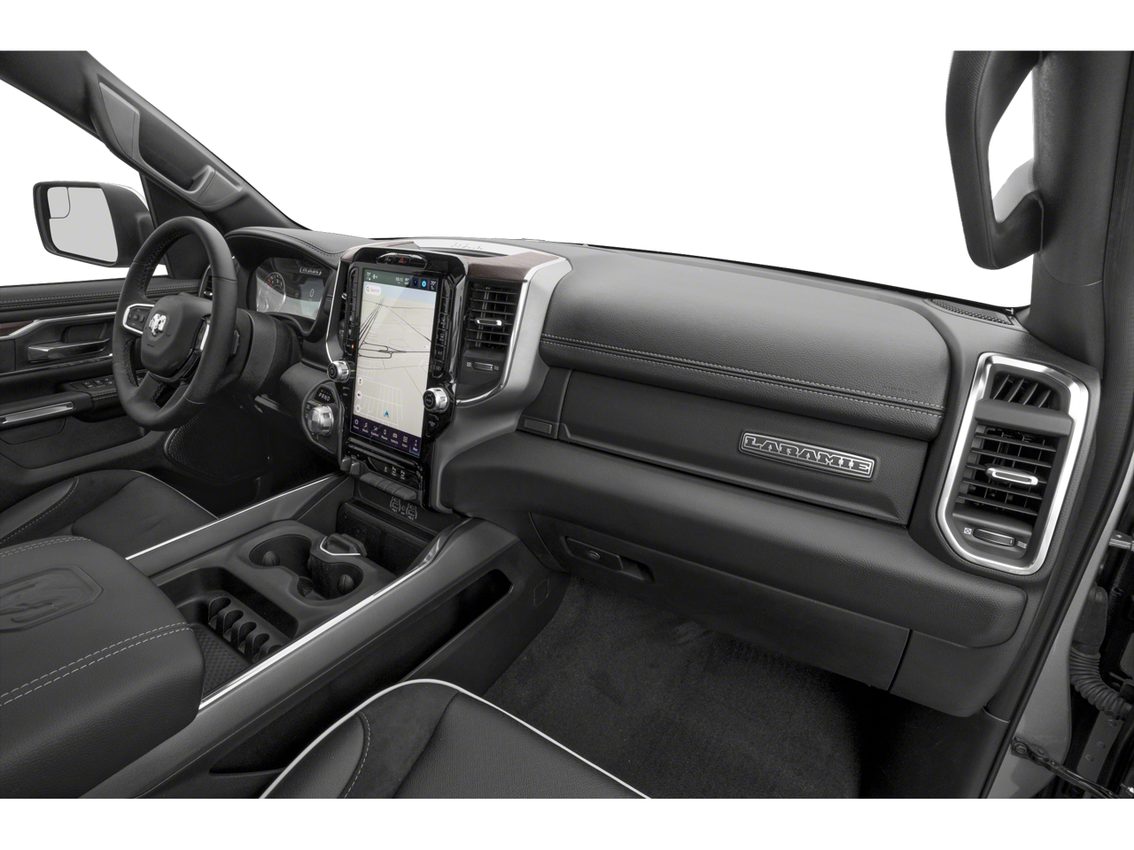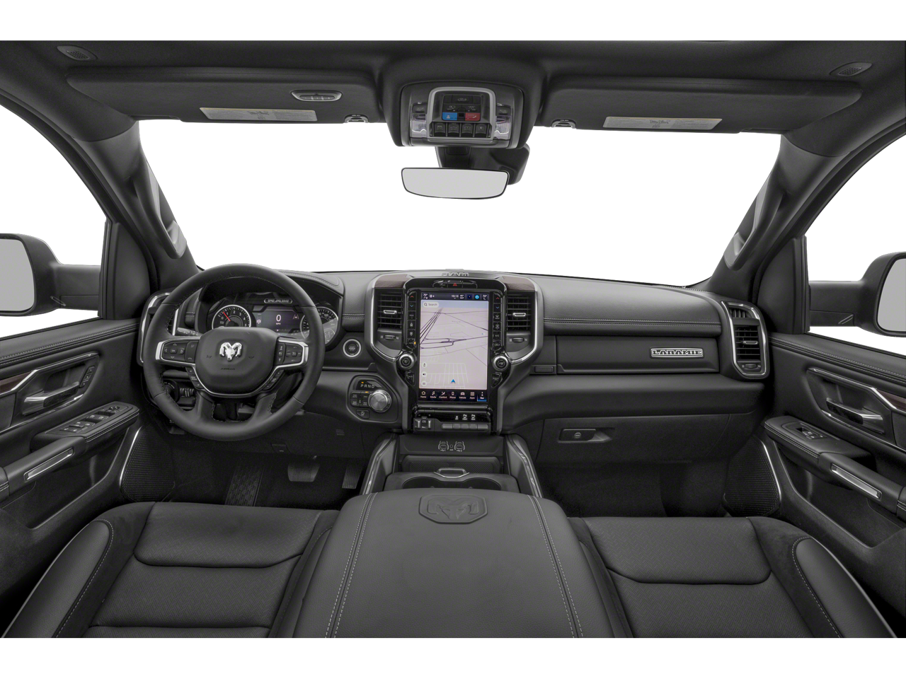 10 Speakers, 14.4 Touchscreen Display, 3 Rear Seat Head Restraints, 3.55 Rear Axle Ratio, 4 Way Front Headrests, 4-Wheel Disc Brakes, 4G LTE Wi-Fi Hot Spot, ABS brakes, Air Conditioning, Alloy wheels, AM/FM radio: SiriusXM with 360L, Apple CarPlay, Apple CarPlay/Android Auto, Audio memory, Auto High-beam Headlights, Auto Power-Folding Mirrors, Auto-dimming door mirrors, Auto-Dimming Exterior Driver Mirror, Auto-dimming Rear-View mirror, Automatic temperature control, Bed Utility Group, Brake assist, Bumpers: chrome, Chrome Exterior Mirrors, Cluster 12 TFT Color Display, Compass, Connected Travel & Traffic Services, Connectivity - US/Canada, Convex Wide-Angle Exterior Mirror Insert, Delay-off headlights, Driver door bin, Driver Seat Memory, Driver vanity mirror, Dual front impact airbags, Dual front side impact airbags, Electronic Stability Control, Exterior Mirrors Courtesy Lamps, Exterior Mirrors w/Heating Element, Exterior Mirrors w/Memory, Exterior Mirrors w/Supplemental Signals, Front anti-roll bar, Front Center Armrest w/Storage, Front dual zone A/C, Front fog lights, Front License Plate Bracket, Front reading lights, Front Seat Back Map Pockets, Front wheel independent suspension, Fully automatic headlights, Garage door transmitter, Google Android Auto, GPS Antenna Input, GPS Navigation, harman/kardon 19 Speaker Premium Sound, HD Radio, Heated door mirrors, Heated Front Seats, Heated front seats, Heated rear seats, Heated Steering Wheel, Heated steering wheel, Illuminated entry, Integrated Voice Command w/Bluetooth®, Laramie Level 2 Equipment Group, Leather steering wheel, Leather Trim 40/20/40 Bench Seat, Low tire pressure warning, Manufacturer's Statement of Origin, Memory seat, MOPAR 4 Adjustable Cargo Tie-Down Hooks, MOPAR Front & Rear Rubber Floor Mats, MOPAR Spray In Bedliner, Navigation System, Occupant sensing airbag, Outside temperature display, Overhead airbag, Overhead console, Panic alarm, ParkView Rear Back-Up Camera, Passenger door bin, Passenger vanity mirror, Power 2-Way Driver Lumbar Adjust, Power 2-Way Passenger Lumbar Adjust, Power Adjust 8-Way Front Passenger Seat, Power door mirrors, Power driver seat, Power passenger seat, Power steering, Power Tailgate, Power windows, Quick Order Package 21H Laramie, Radio data system, Radio: Uconnect 5 Nav w/12.0 Display, Radio: Uconnect 5 Nav w/14.4 Display, Rain Sensitive Windshield Wipers, RAM Grille Badge - Chrome, Rear anti-roll bar, Rear reading lights, Rear seat center armrest, Rear step bumper, Remote keyless entry, Security system, SiriusXM w/360L, Speed control, Split folding rear seat, Steering wheel mounted audio controls, Tachometer, Telescoping steering wheel, Tilt steering wheel, Traction control, Trip computer, Turn signal indicator mirrors, USB Host Flip, Variably intermittent wipers, Ventilated Front Seats, Ventilated front seats, Voltmeter, Wheel to Wheel Side Steps, Wheels: 20 x 9 Premium Paint/Polish.